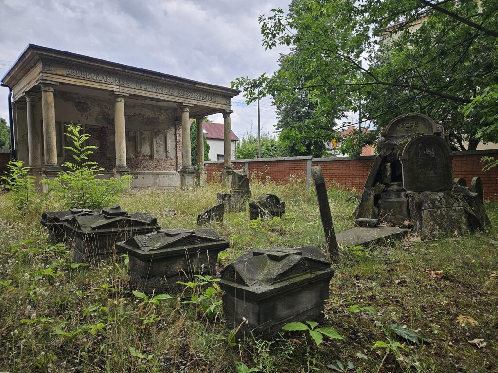 Widok na lapidarium i grobowiec rodziny Königsbergerów w lipcu 2024 roku (fot. Sławomir Pastuszka)