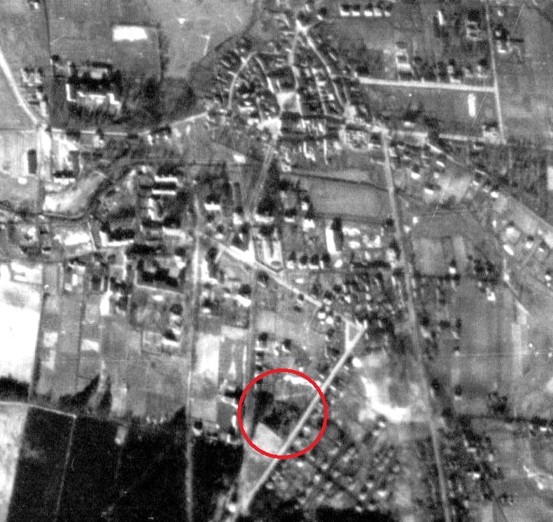 Obszar cmentarza na zdjęciu lotniczym z 1945 roku