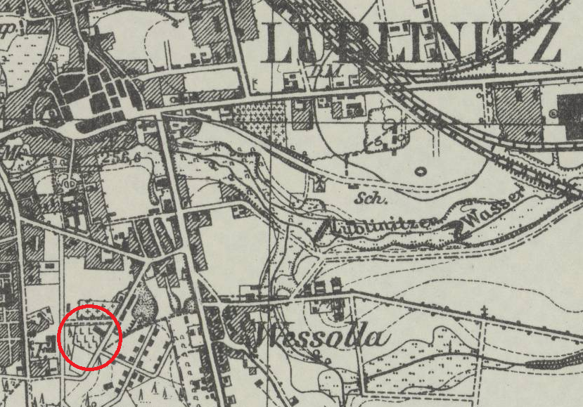 Lokalizacja cmentarza na mapie typu Messtischblatt z 1877 roku
