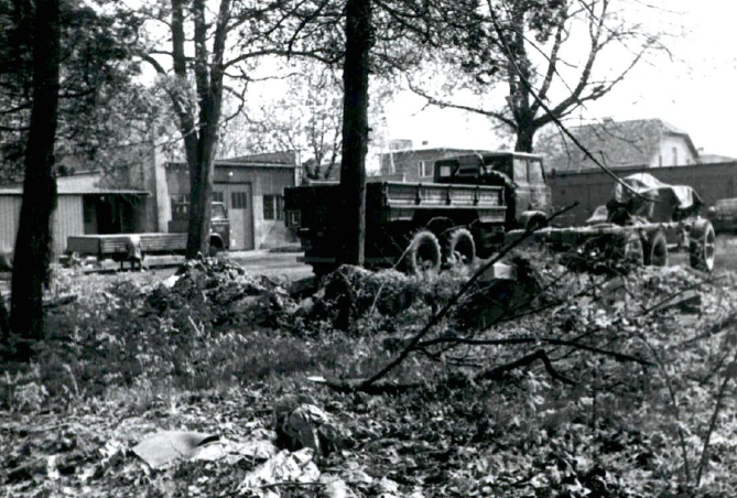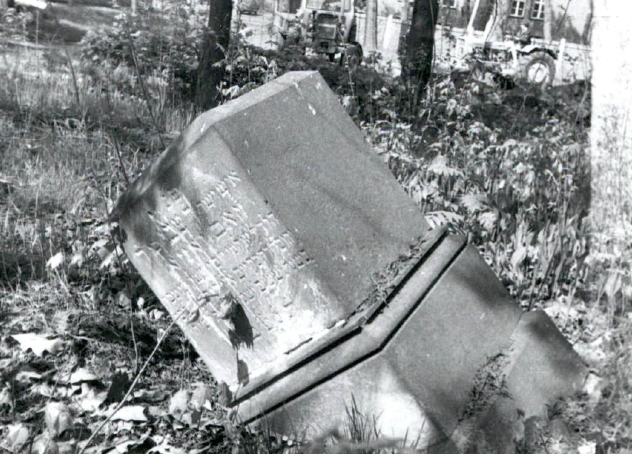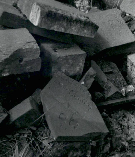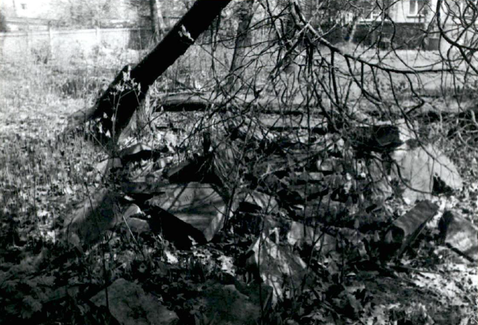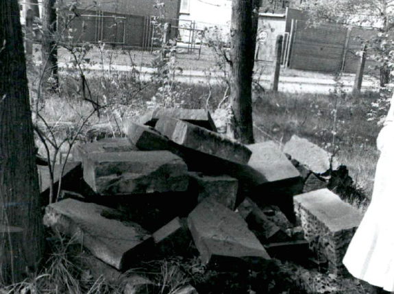 Zdjęcia stosów zdemontowanych nagrobków w 1987 roku, w tym fotografia jednego z nielicznych nagrobków, nadal stojących jeszcze w swoim oryginalnym miejscu (fot. Jacek Koj).