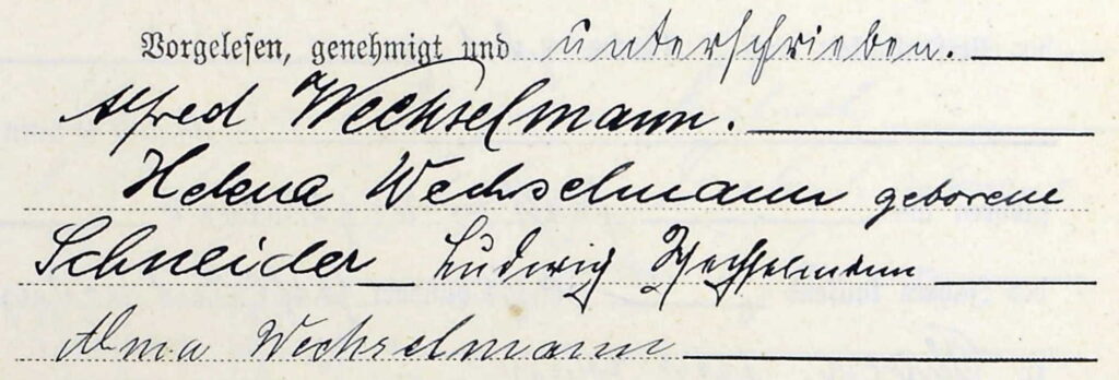Podpisy Alfreda, Heleny, Ludwiga i Almy Wechselmannów